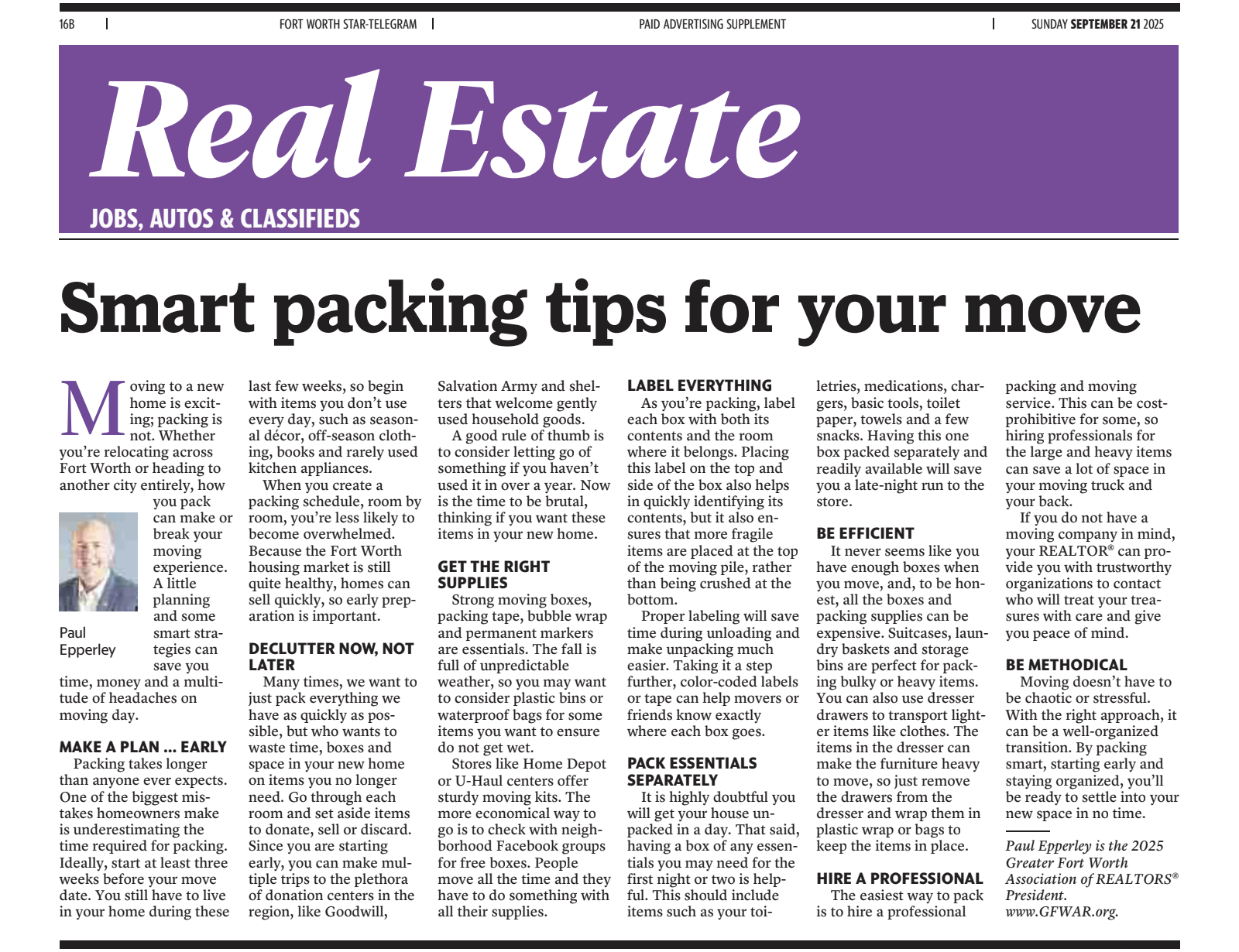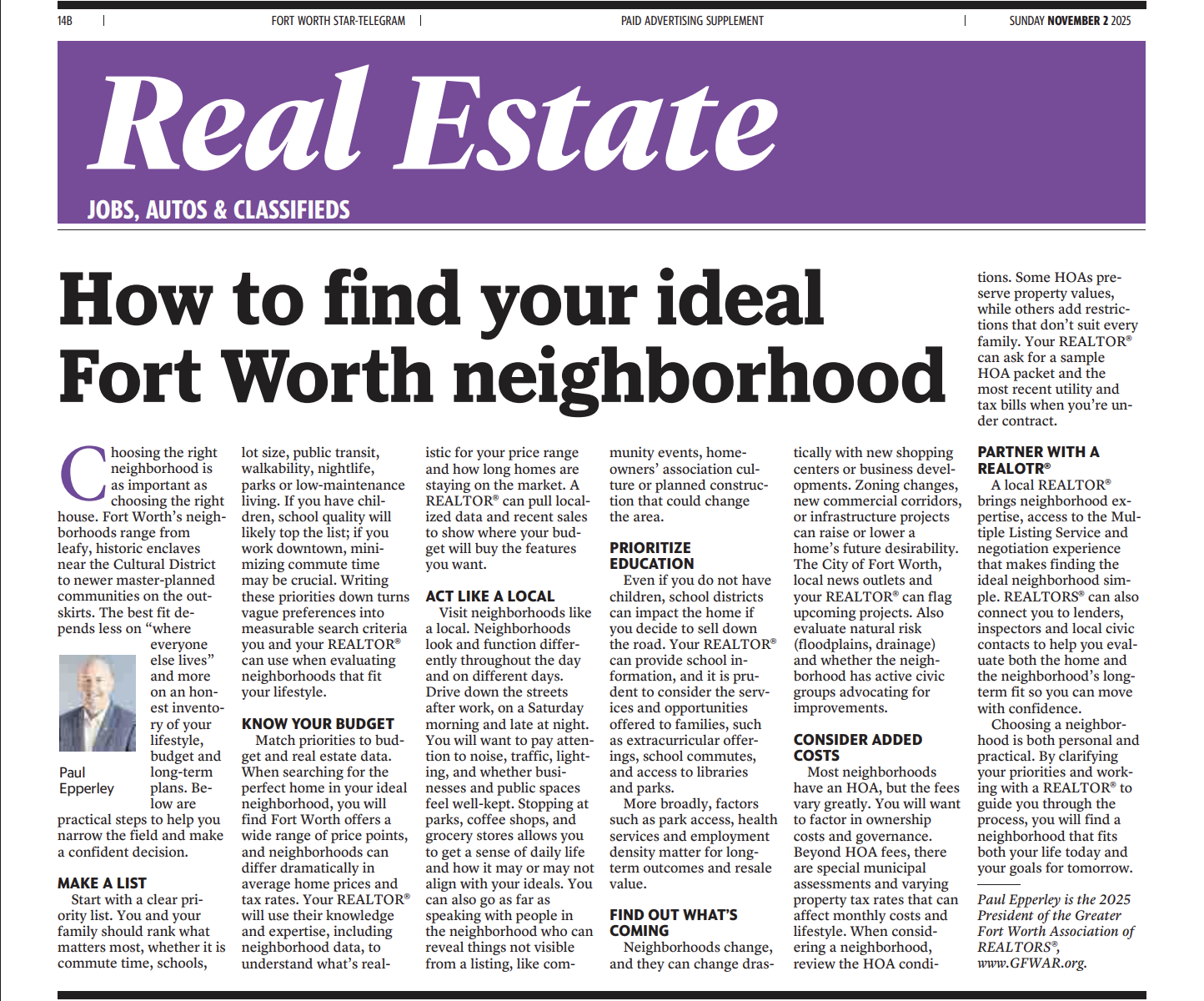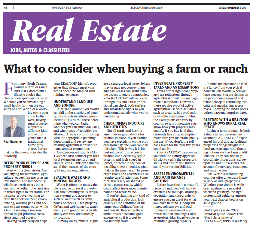 EPPERLEY NAMED BOARD PRESIDENT OF GREATER FORT WORTH ASSOCIATION OF REALTORS®