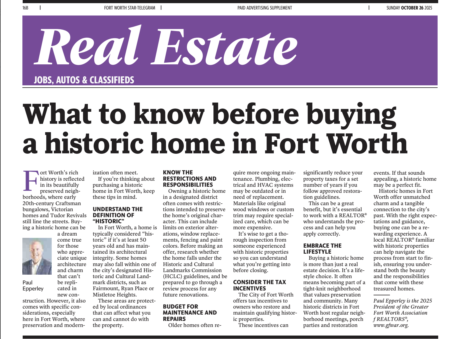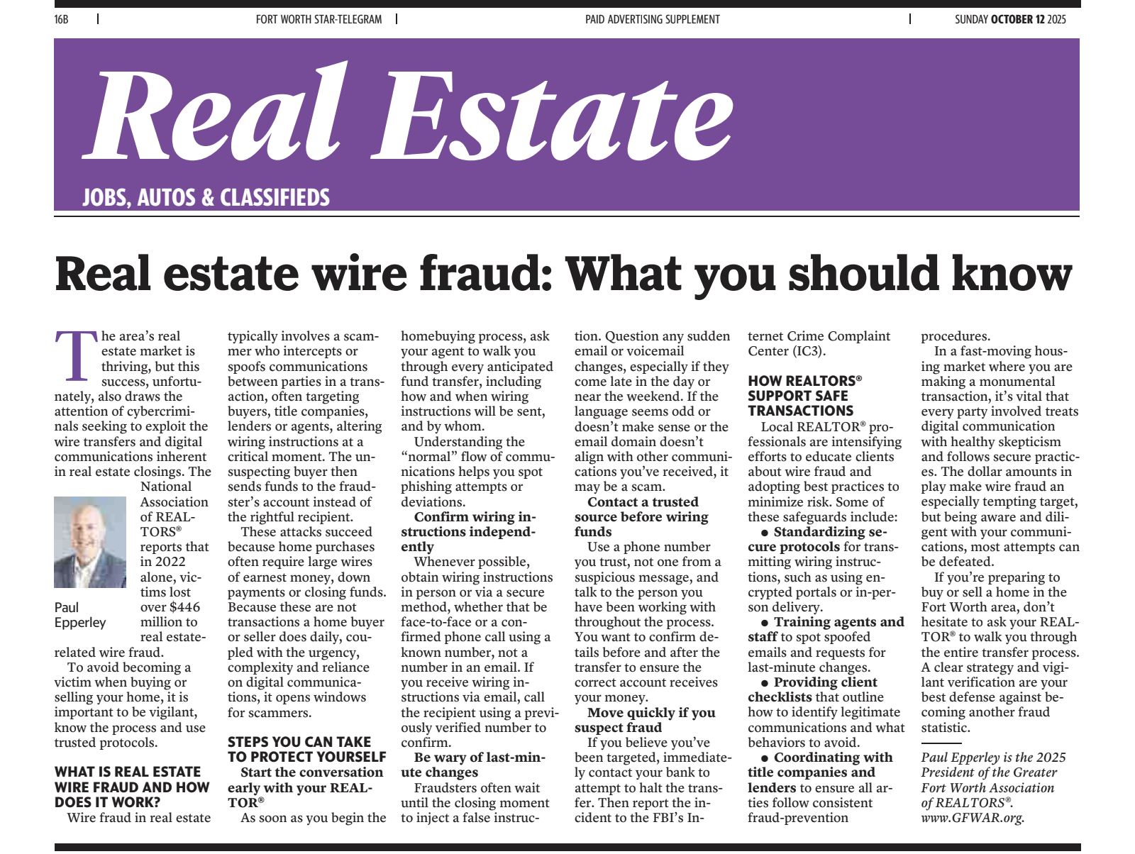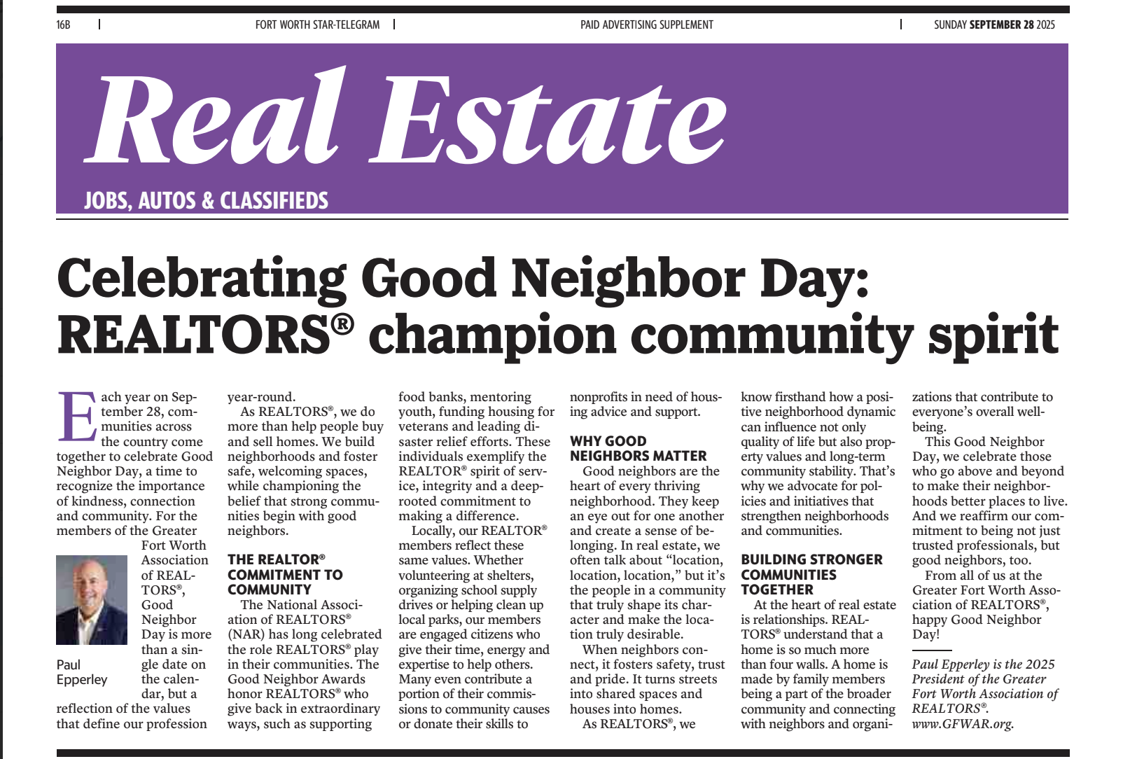 EPPERLEY NAMED BOARD PRESIDENT OF GREATER FORT WORTH ASSOCIATION OF REALTORS®