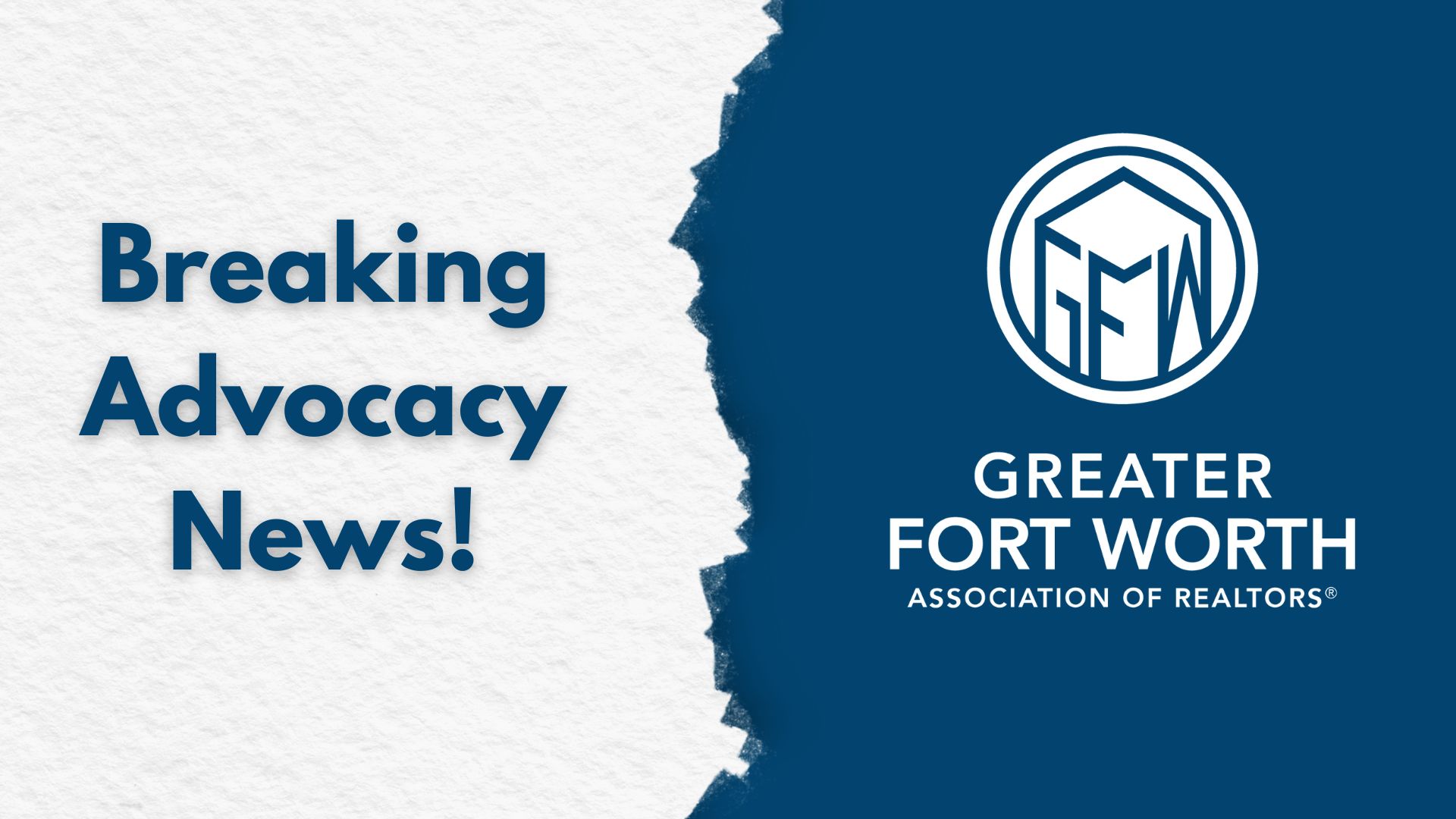 News Propositions Texas REALTORS® Are Supporting on November 4th September 19, 2025 Read More City Council Lowers Property Tax Rate: A Win for Fort Worth Homeowners September 18, 2025 Read More Mandatory Bylaws Updates for MLS Compliance September 18, 2025 Read More New Laws in Effect September 17, 2025 Read More NTREIS x HAR Data Share September 16, 2025 Read More 2026 Slate of GFWAR Officers and Directors September 9, 2025 Read More « Previous 1 2 3 4 … 26 Next »